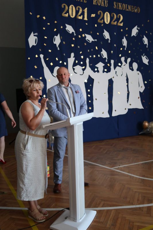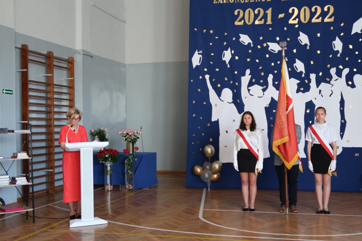 Na zakończenie uroczystości dyrektor szkoły pogratulowała uczniom wyników, podziękowała nauczycielom i pracownikom za całoroczną pracę i złożyła wszystkim życzenia udanego i bezpiecznego wypoczynku, niezapomnianych wrażeń, interesujących podróży i przygód oraz szczęśliwego powrotu do szkoły, z nowymi zasobami energii niezbędnej do podejmowania kolejnych wyzwań.