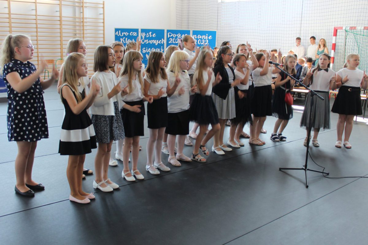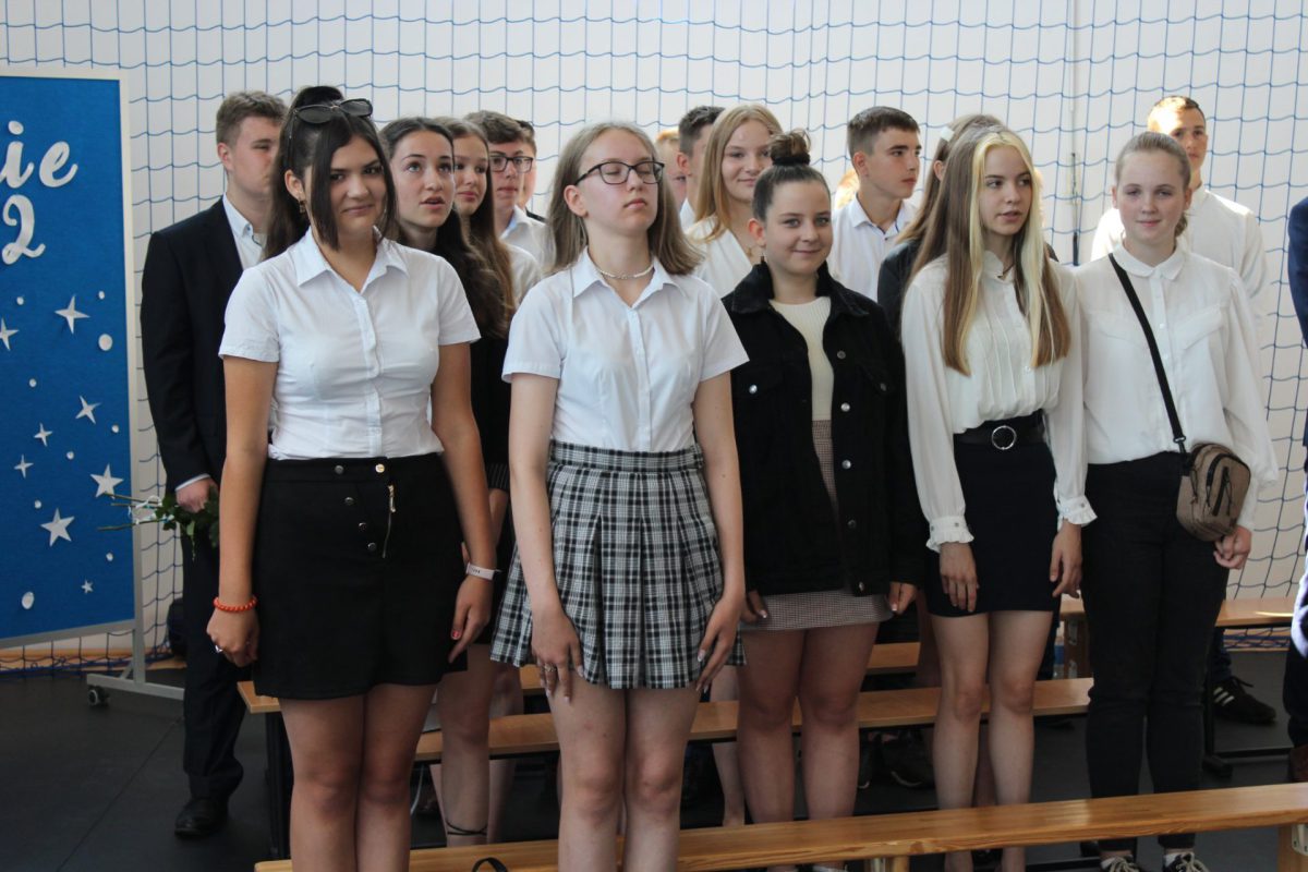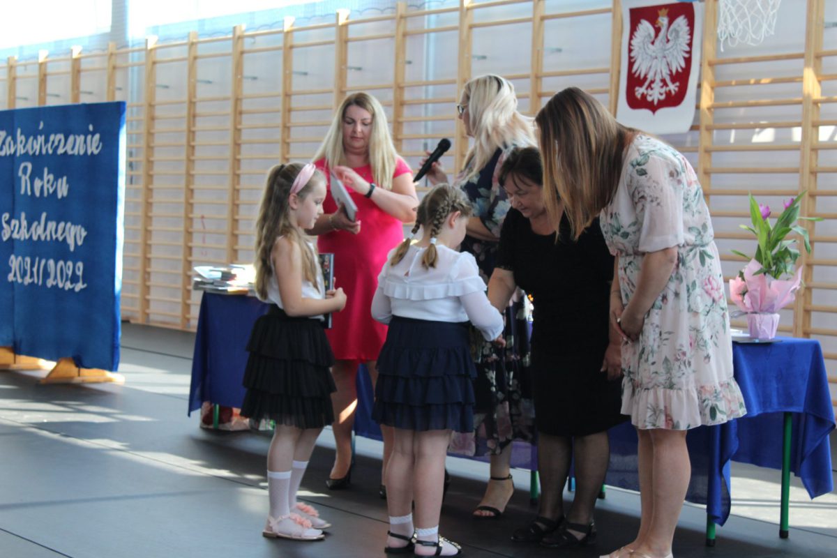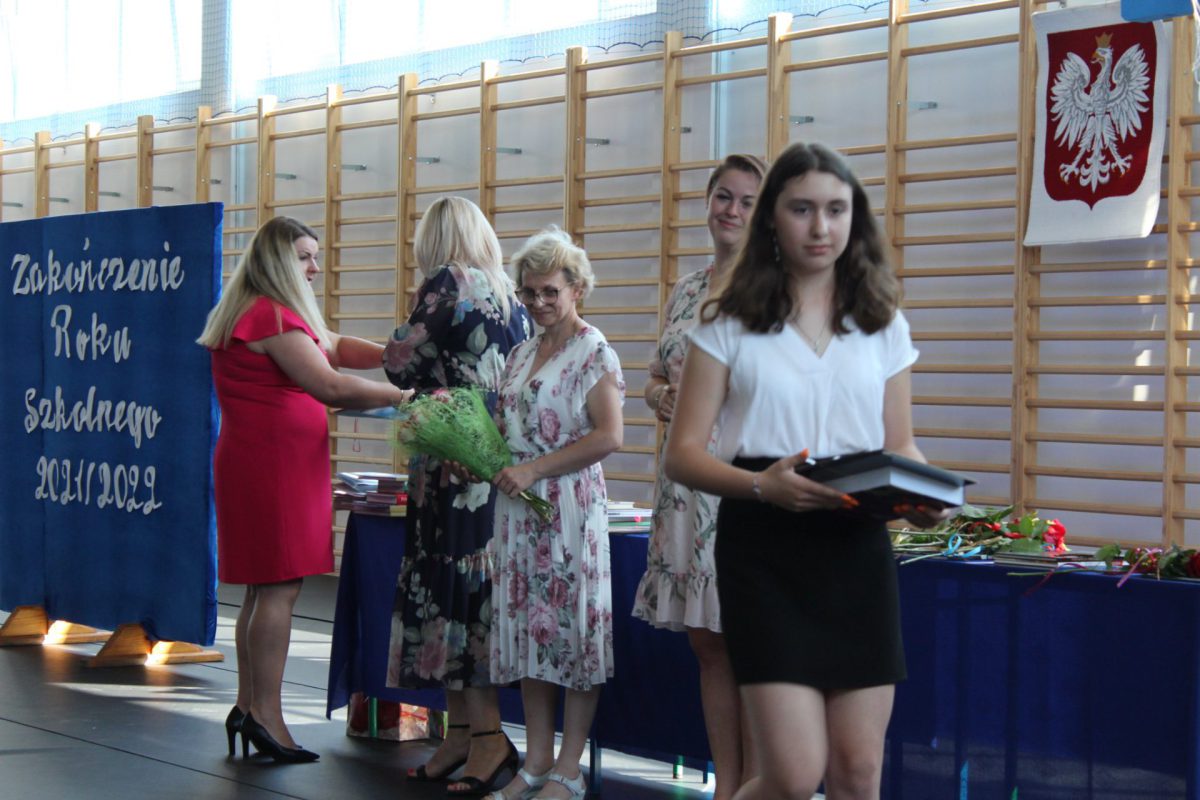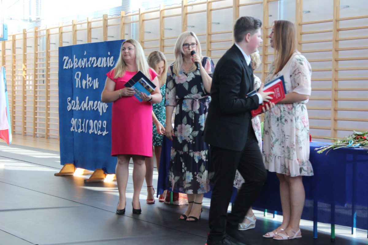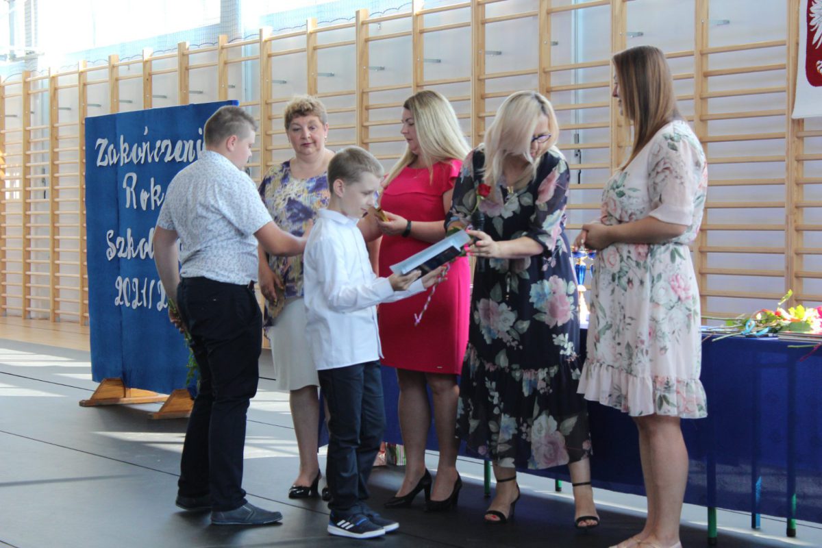 Punktualnie o godz. 9.00 w naszej sali gimnastycznej przy dźwiękach „Mazurka Dąbrowskiego” rozpoczął się apel kończący rok szkolny 2021/2022. Pani dyrektor Małgorzata Balcerzak podsumowała działania edukacyjno-opiekuńcze i podziękowała za dotychczasową pracę.