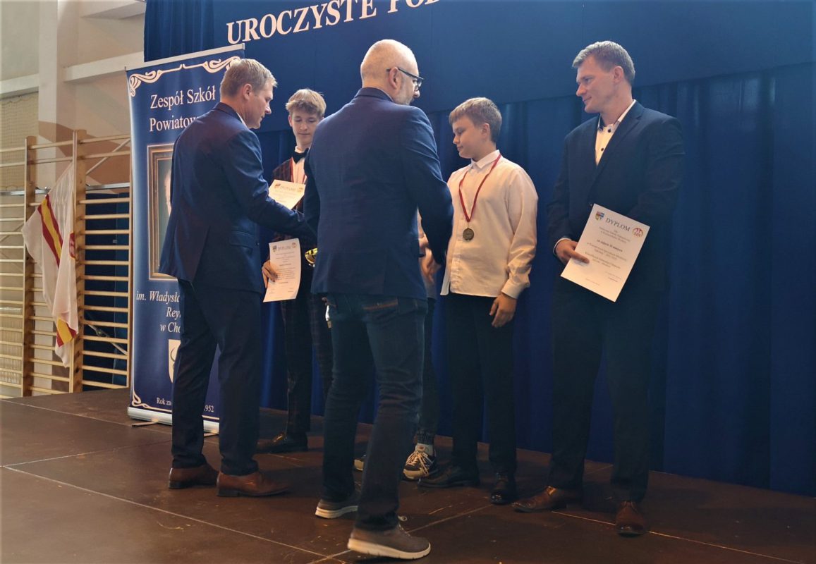 Starosta Krzysztof Bieńkowski pogratulował oraz wręczył dyplomy i nagrody zawodnikom podkreślając, że współzawodnictwo sportowe kształtuje fizycznie, jak również wzmacnia charaktery i wyzwala pozytywne emocje. Jednocześnie złożył na ręce Przewodniczącego Zarządu Powiatowego Szkolnego Związku Sportowego w Przasnyszu Grzegorza Cołosińskiego podziękowania dla wszystkich nauczycieli wychowania fizycznego za ich wkład w organizacje Powiatowych Igrzysk Młodzieży Szkolnej oraz za zaangażowanie w rozwój kultury fizycznej i sportu na terenie powiatu przasnyskiego.