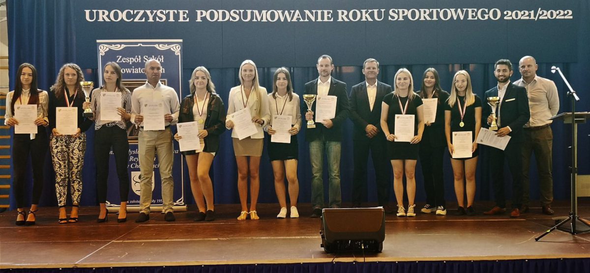 22 czerwca w Zespole Szkół Powiatowych w Chorzelach w obecności starosty Krzysztofa Bieńkowskiego spotkali się przedstawiciele szkół i Powiatowego Szkolnego Związku Sportowego w celu podsumowania wyników rywalizacji sportowej w roku szkolnym 2021/2022.