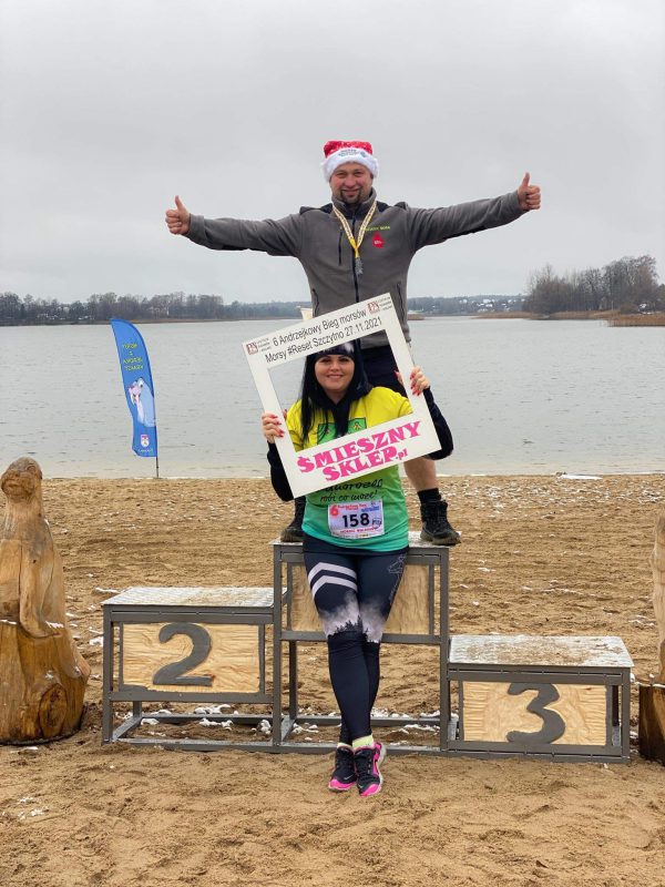 Zawodniczka pokonała na kijach dystans 5 km trasą wokół jeziora. Otrzymała piękny medal. Tradycyjnie po biegu odbyło się morsowanie i zbiórka charytatywna dla Olusia…