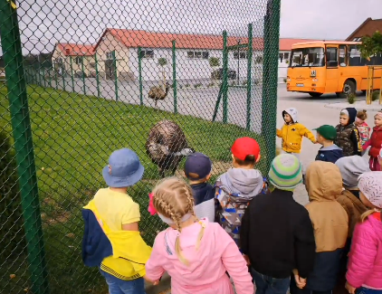 Tam dzieci miały okazję poznać różne zwierzęta, zarówno te znane: konie, kozy, łabędzie, jak i mniej znane: sarny, jelenie, muflony, pawie, daniele, strusie emu, bażanty. Wszystkie dzieci były zachwycone, że mogły z tak bliska podziwiać zwierzęta a nawet je pogłaskać. Wielką atrakcją była również przejażdżka konną bryczką. Na zakończenie naszej wycieczki dla dzieci czekał miły poczęstunek w postaci pysznych lodów.