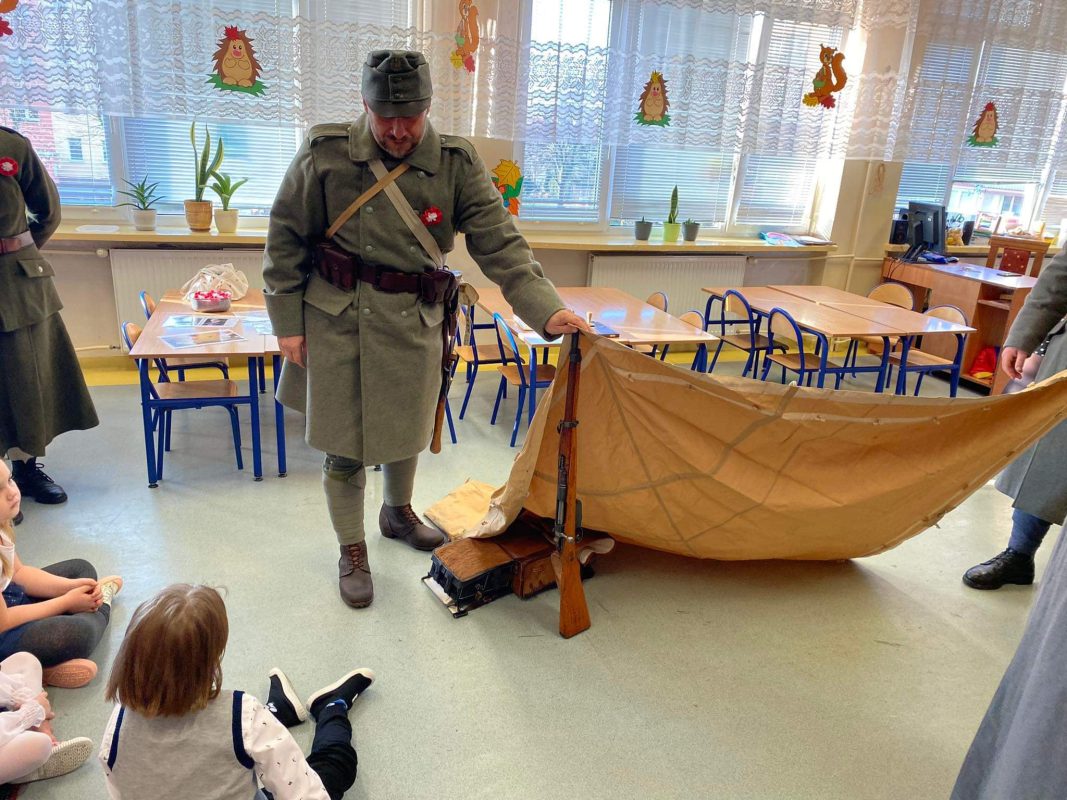 W przeddzień Święta Niepodległości zerówkowiczów odwiedziła grupa rekonstruktorów ze Stowarzyszenia Rekonstrukcji Historycznych Marienburg 152 IR.